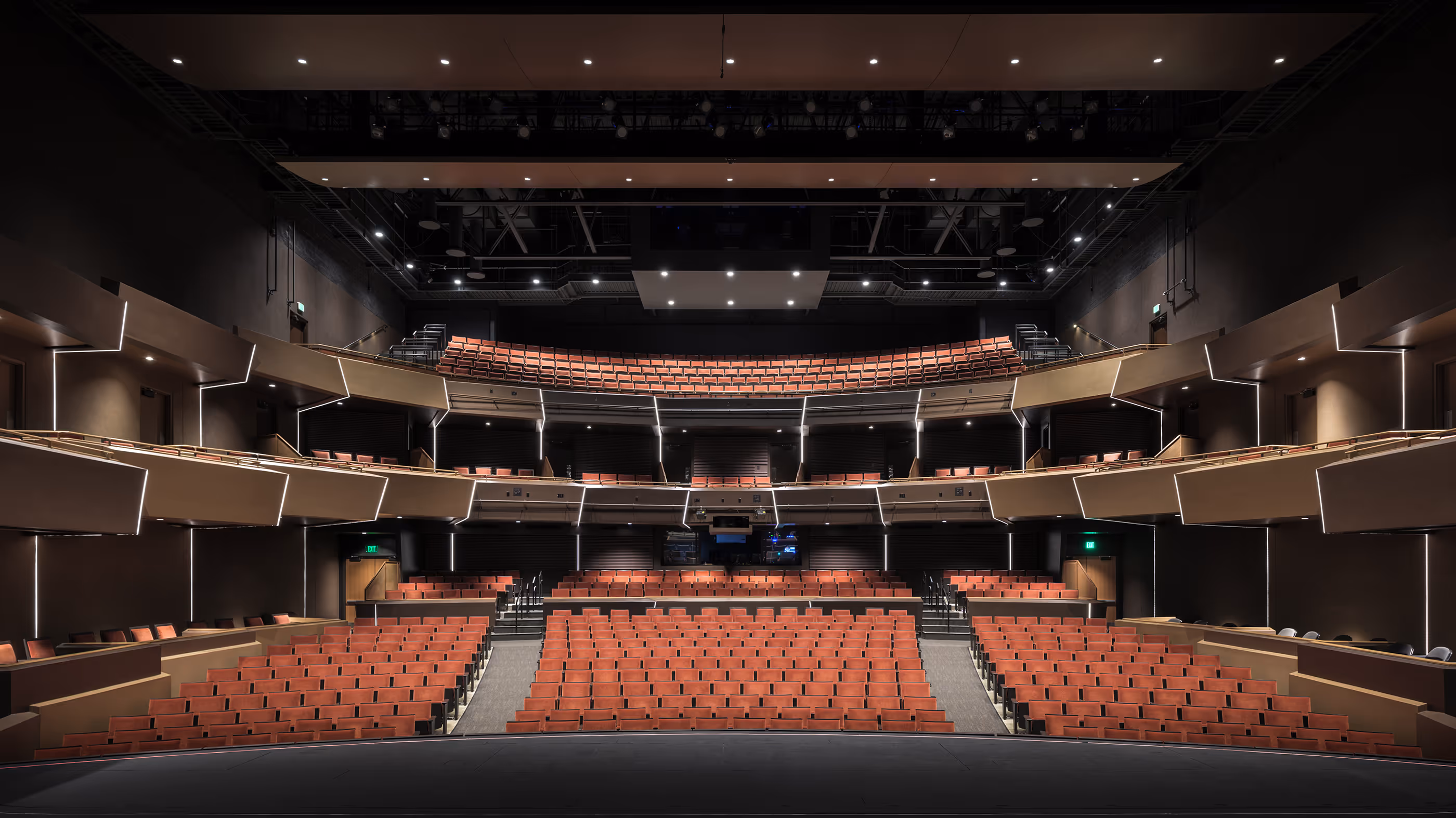 Colorado Mesa University’s new campus theatre expands not only the training opportunities available to students, but also the cultural role of the university in the Western Slope region. With 840 seats, the largest stage on the Western Slope, and a full complement of technical capabilities, the new theatre will support campus concerts, musicals and dance events as well as touring artists, civic presentations and conference presentations. The siting of the new building is intended to capitalize on the campus’s new hotel to stimulate a mixed-use neighborhood of vibrant living and working spaces neighboring the campus. The building’s heating and cooling are generated from the campus’s geothermal loop.