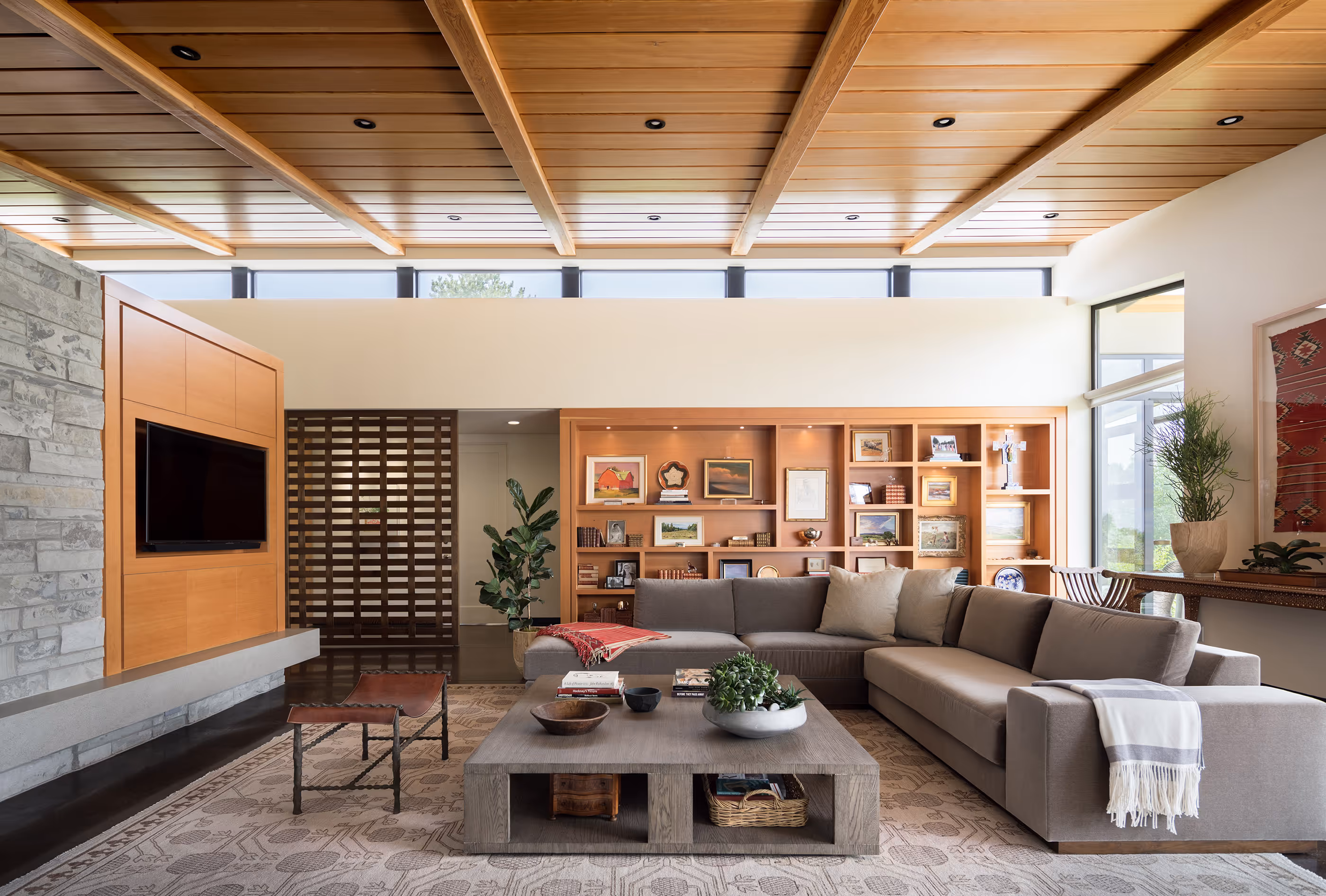 The residence was strategically laid out to maximize views to the mountains from the primary public spaces, while allowing the private spaces to recede and still take advantage of the site and site lines to the west.