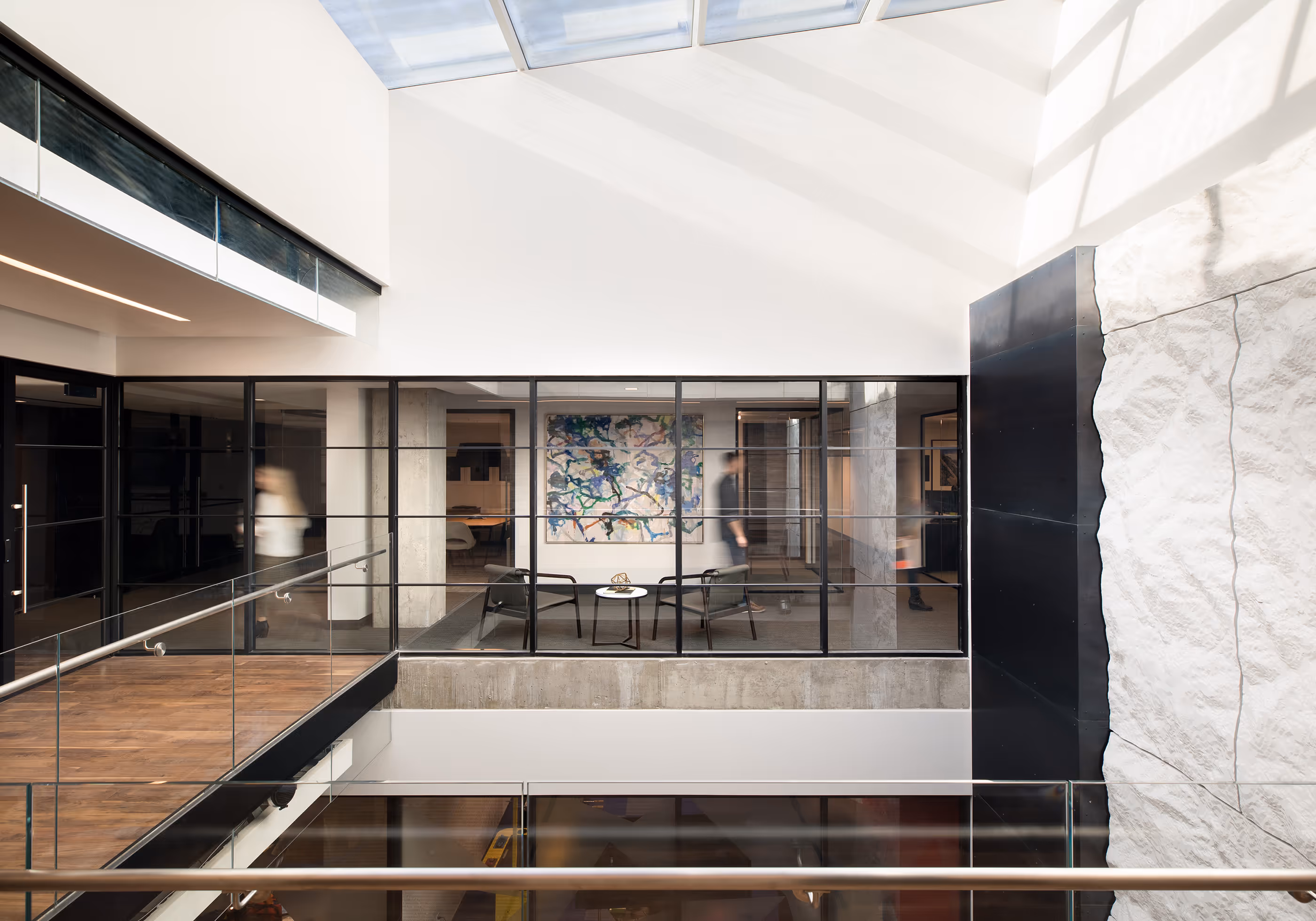 When the former Boulder Camera newspaper site–one of the few remaining premium real estate opportunities in Boulder’s historic Pearl Street district–became available for redevelopment, Crestone Capital Advisors stepped up as both a capital investor and a major office tenant in the new mixed-use building. Crestone’s work space blends private offices, open benching style work areas, state of the art meeting rooms and ad-hoc seating areas in a layout that encourages daily collaboration while showcasing Boulder’s spectacular mountain and city views. A gathering style break area with an operable glass wall opens onto the expansive northwest terrace. The terrace features a rooftop patio with open trellis structure and garden planter, offering greenery and shade for pleasant outdoor dining. By day, the terrace is an alternate outdoor workspace for Crestone employees, and at night, an enhanced entertainment venue for corporate partners and community events.