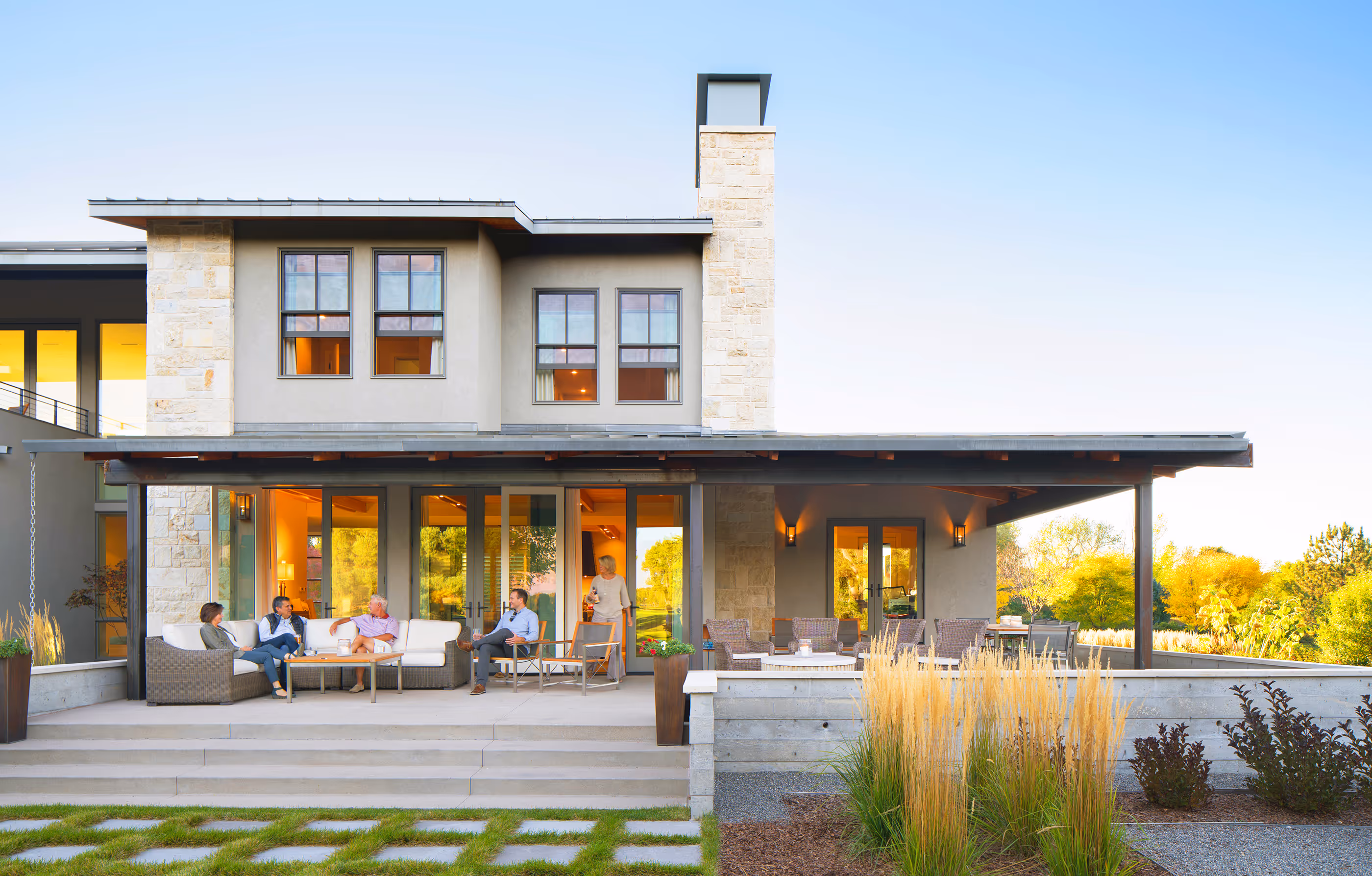 Deep overhangs and oversized glass windows and doors allow for various degrees of alfresco activities and the hosting of family and friends throughout every season.