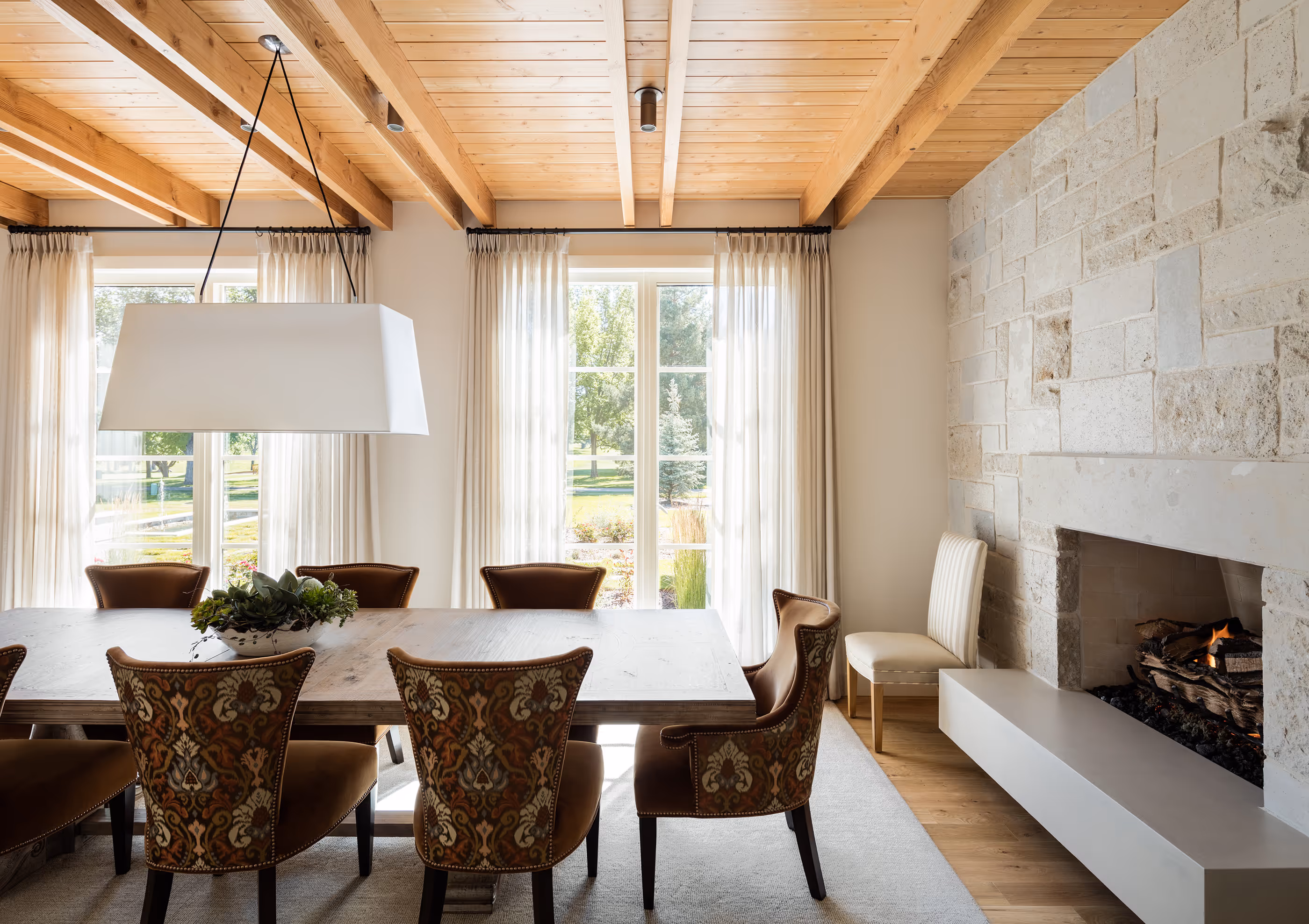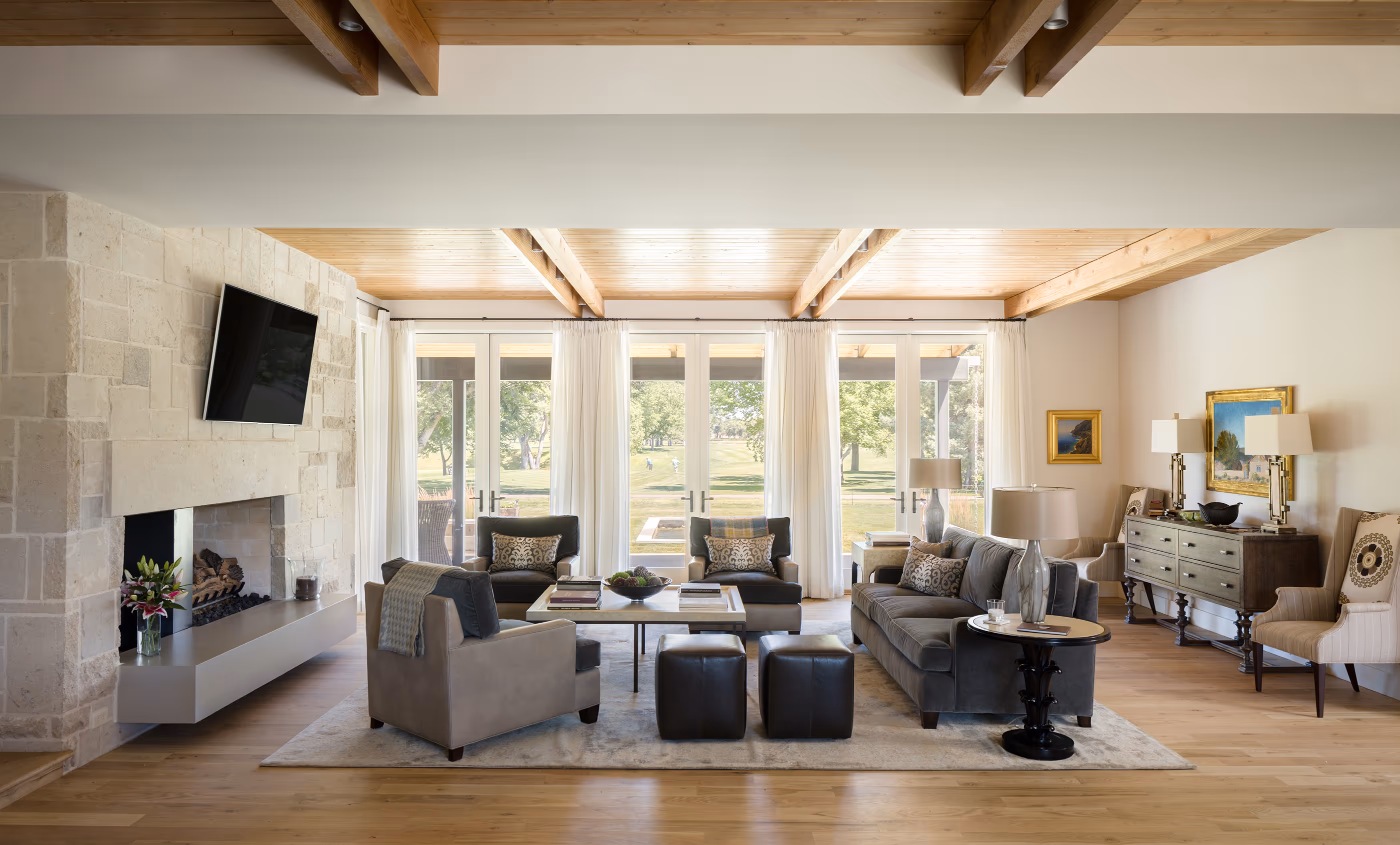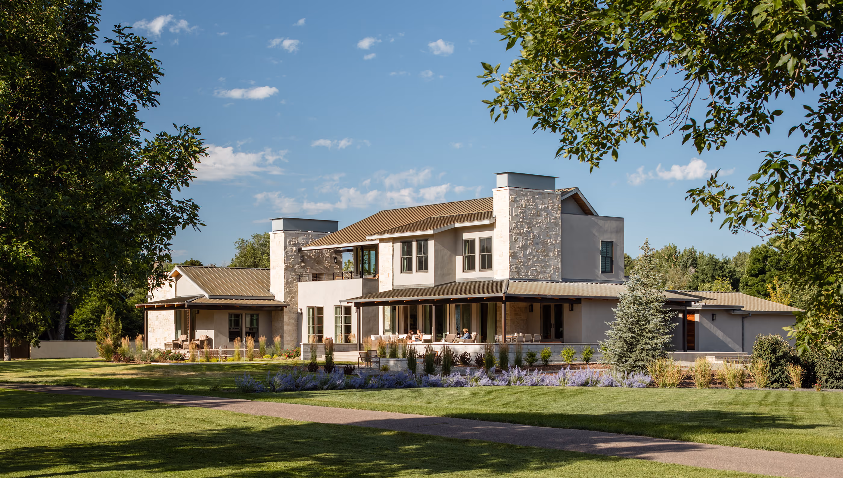 This Cherry Hills Village home is situated among the idyllic surroundings of horse farms and a historic golf course. The client requested that their new home be infused with some of the characteristics they enjoyed while living in the Lone Star State, yet take advantage of Colorado’s highly appealing indoor-outdoor lifestyle. The end result is a carefully organized floor plan designed to enhance access to porches and expansive views of the surrounding landscape and mature trees.