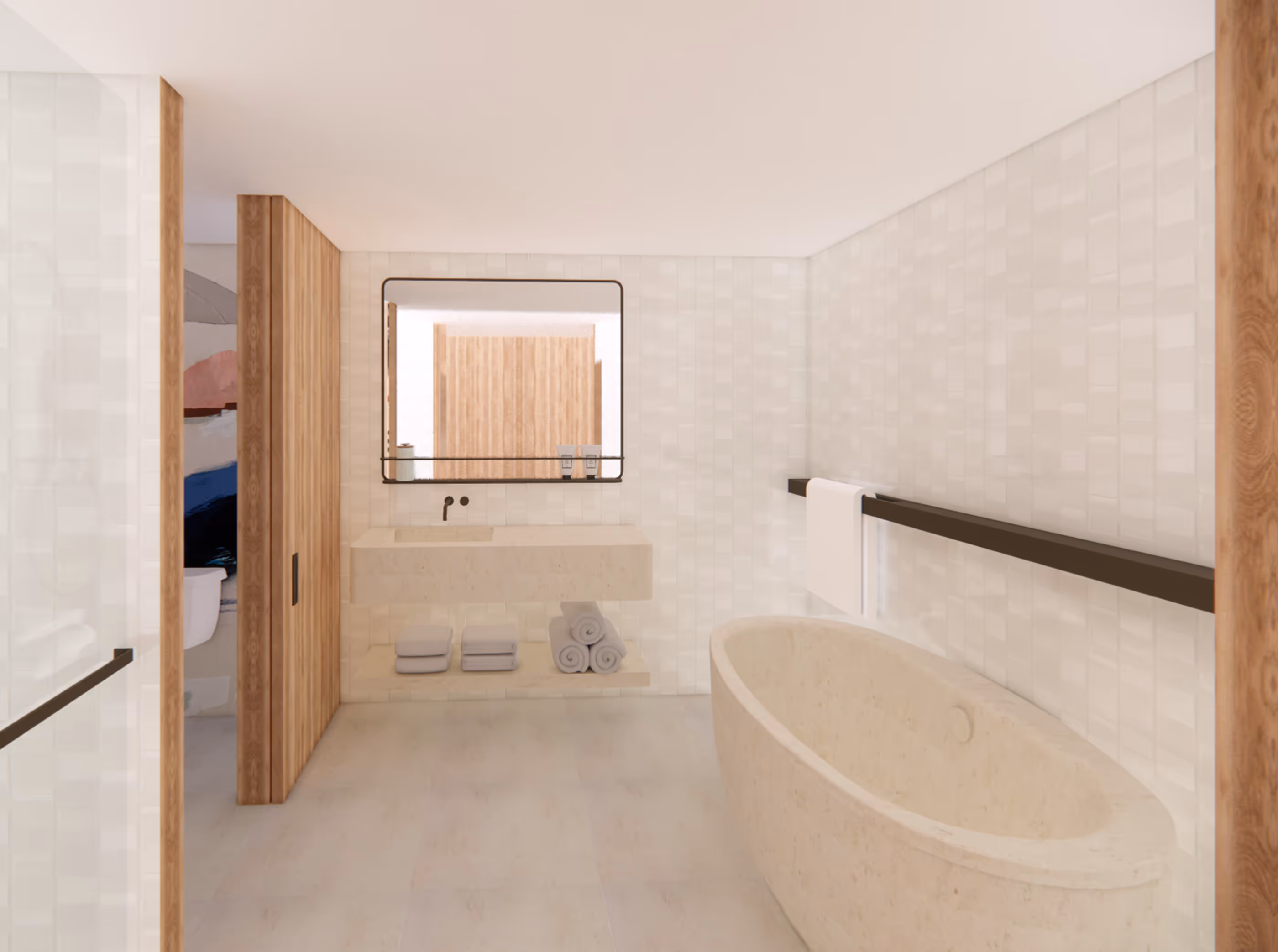 We embraced the concept of "Dérive"—an unplanned journey of discovery—when approaching the Kimpton San Antonio competition. Nestled alongside the iconic Riverwalk, this hotel demanded a design that would weave together the rich tapestry of San Antonio's cultural narratives while creating moments of unexpected delight. The challenge lay in crafting spaces that would invite guests to wander and discover, moving seamlessly between public and private realms. By layering materials, threading together diverse influences, and creating pockets of refreshing comfort, we developed a design that encourages organic exploration while maintaining a sense of timeless belonging within its riverfront context.