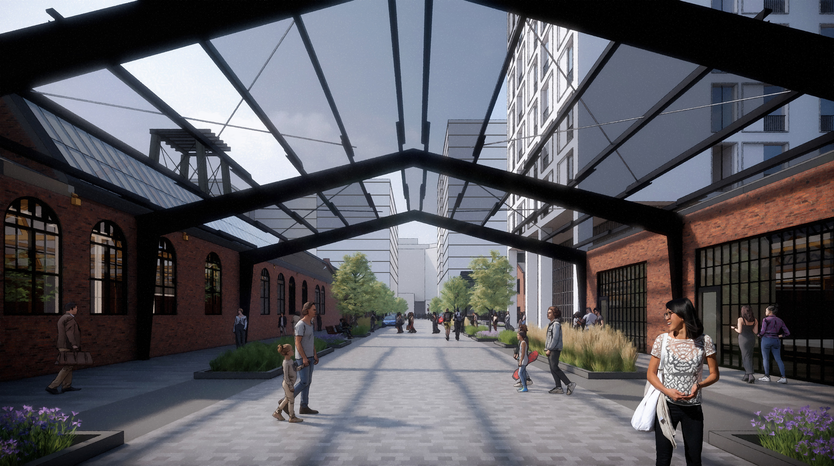 Embracing an inclusive ethos, Hurley Place positions itself with the river as its focal point, inviting diverse communities and fostering economic vibrancy. The Riverfront development is comprised of two residential towers, a hotel tower, and an expansive central open space connecting to the river. This central connector is flanked by food & beverage and retail establishments and serves as both a connection to the Promenade but also a gathering space for the community.