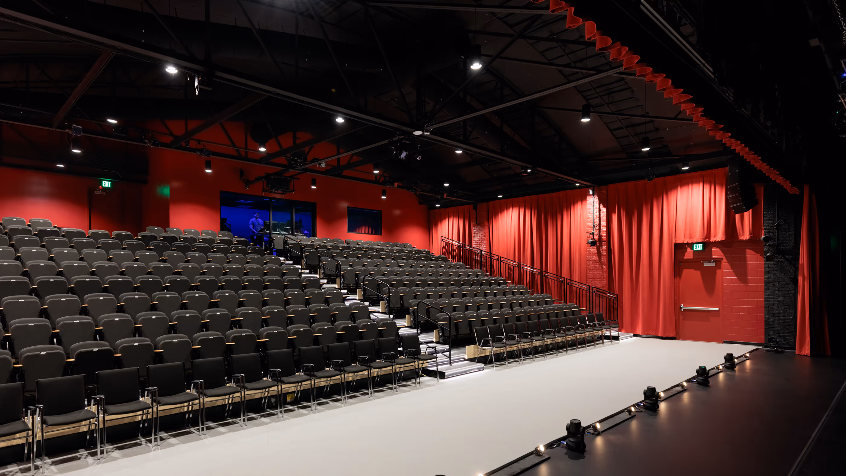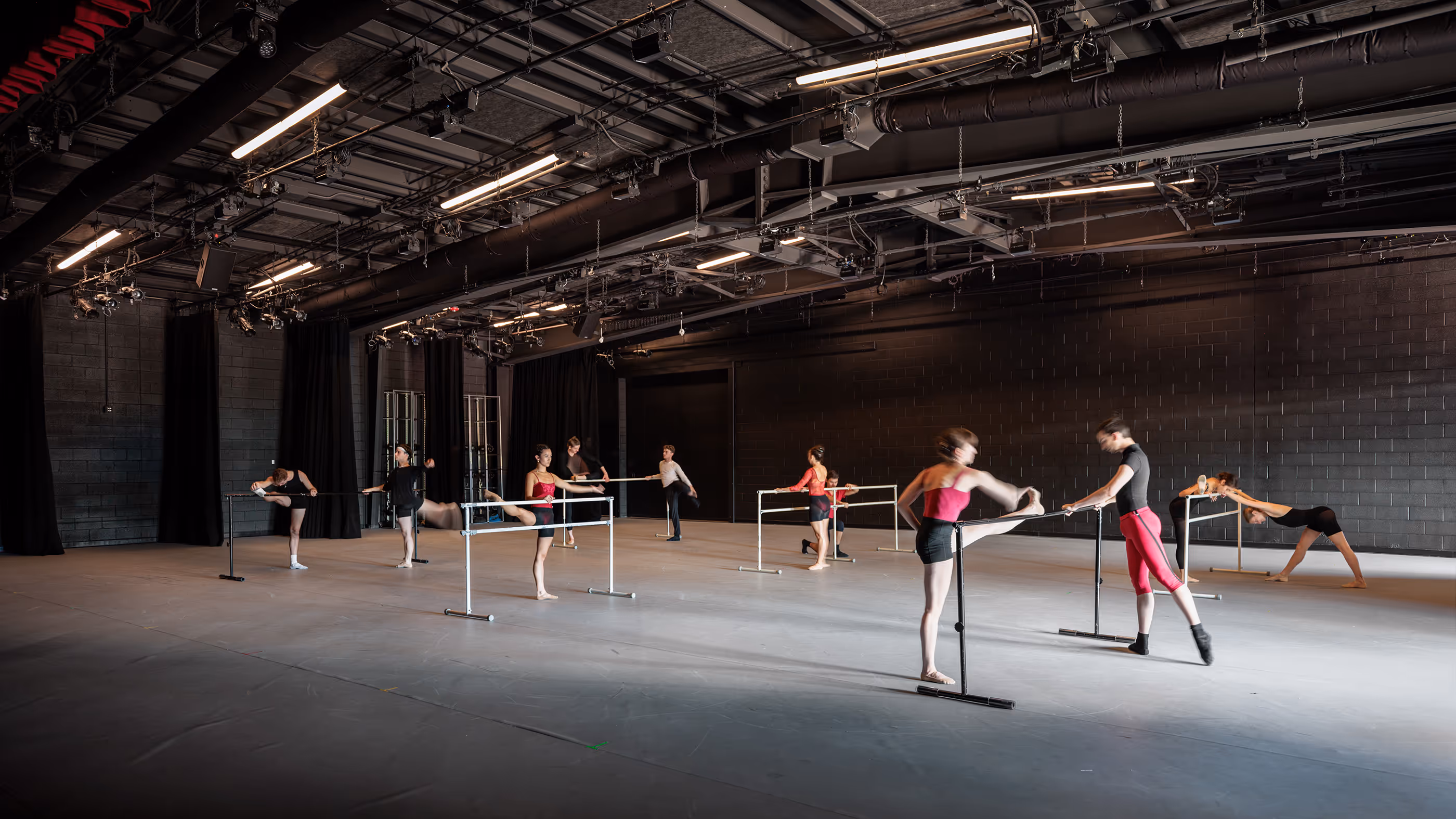 Through the use of a telescoping seating system, the audience chamber can convert from seating area to a second dance studio – allowing the company to rehearse two ensembles simultaneously, and to convert quickly from rehearsal mode to performance mode.